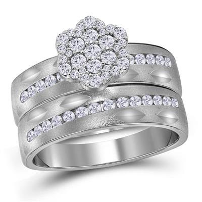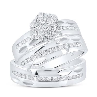 Elegantly crafted in your choice of 14k yellow or white gold, this matching wedding ring set features a radiant round diamond cluster totaling 3/4 cttw. Its brilliant sparkle and timeless design make it a perfect symbol of love, unity, and lifelong commitment.